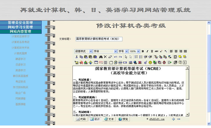 电脑培训学校网站后台页面运行截图:
